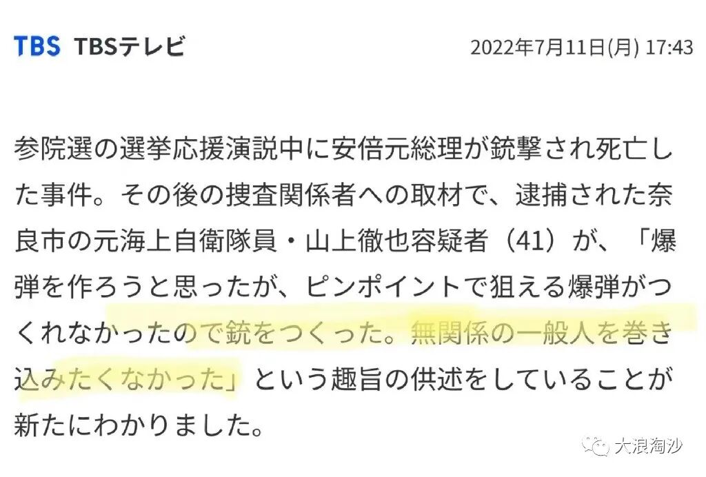 刺杀安倍的义士山上徹也最近在采访中表示:“我本来想做炸弹但放弃了,因为我不想牵扯到无关紧要的普通人”。非常有力度地说明刺杀安倍跟恐怖袭击没有一毛钱关系。