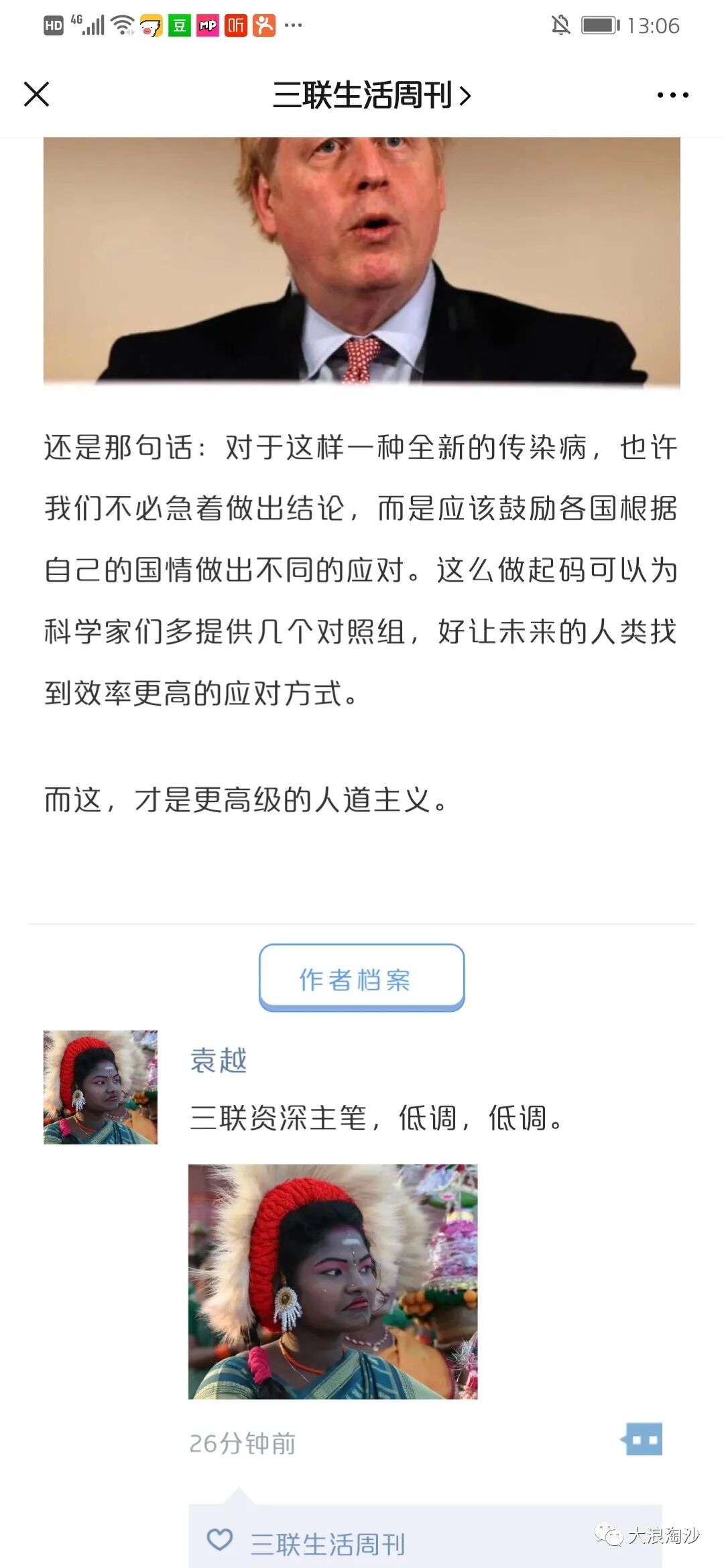 三联最后这段啥意思啊,就是搞个对照组实验,有人搞全民防疫这一套,有人搞放任自流群体免疫这一套,然后看看谁“效率”更高。这TM不是坏出水了么,这就是明显的把人命不当命啊。当他把一个明显会牺牲一大部分的人的策略考虑其中,还想作为一个“对照组实验”,就已经完全陷入了功利主义陷阱。