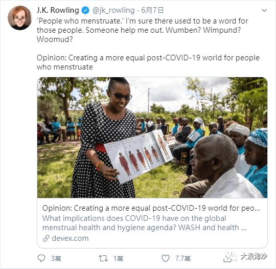 从我们一个旁观的第三方视角来看。那篇新闻报道问题不大,文章中主要指出,疫情影响下的世界医疗资源吃紧。许多地区的女性患者和女性医务工作者没有很好处理自己月事的条件——很正常的一篇报道。既然文章的主题是疫情下许多地区女性月事的不便利条件,题目用作“来月经的人”是就事论事。但我同样认为罗琳女士的言论也没有大毛病,虽然那篇文章本身就是探讨“来月经”的不便利以及呼吁大家关注女性卫生和权益,但是“来月经的人”是一种天然的对于女性的歧视称谓,她单单反对这一个名词也没有问题。