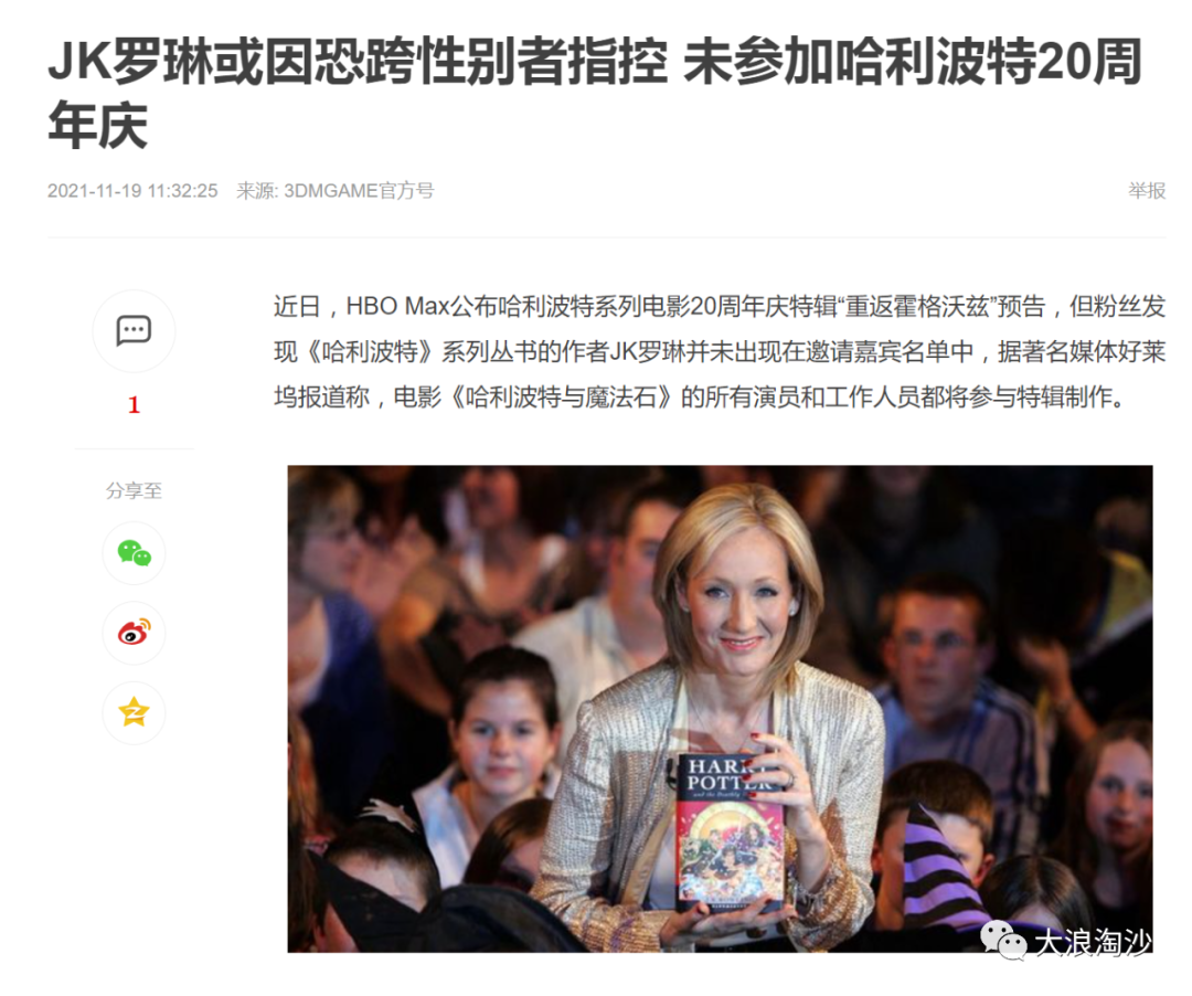 更让人感到心寒的是,众多靠《哈利·波特》系列名声大噪一步登天的演员们,反过来纷纷指责罗琳女士,向“政治正确”献媚。