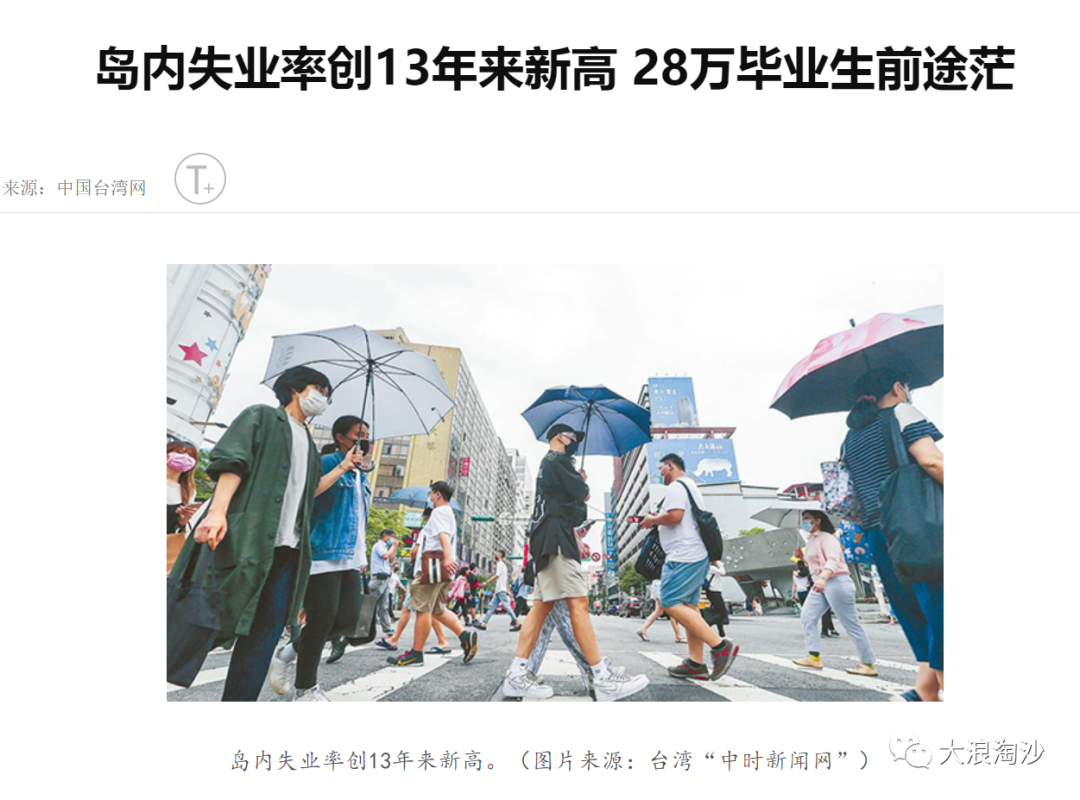 不只是疫情问题,台湾省的经济也不太行。虽然去年GDP和出口贸易等数字挺好看,但那是因为全球疫情下大陆制造业需求激增,台湾省和大陆的经济有很多的互补性,相当于我们带台湾飞了。但就跟香港一样,经济发展的绝大多数成果都被四大家族所攫取,台湾年轻人也并没有觉得经济数字改善对自己生活有什么提升。首先工资就没有涨,其次失业率一直再涨,再次还有一个数据2020年是台湾近十一年来首次消费税下降。这说明啥,疫情影响下台湾居民普遍没钱了,只能低欲望生活、压缩消费了。