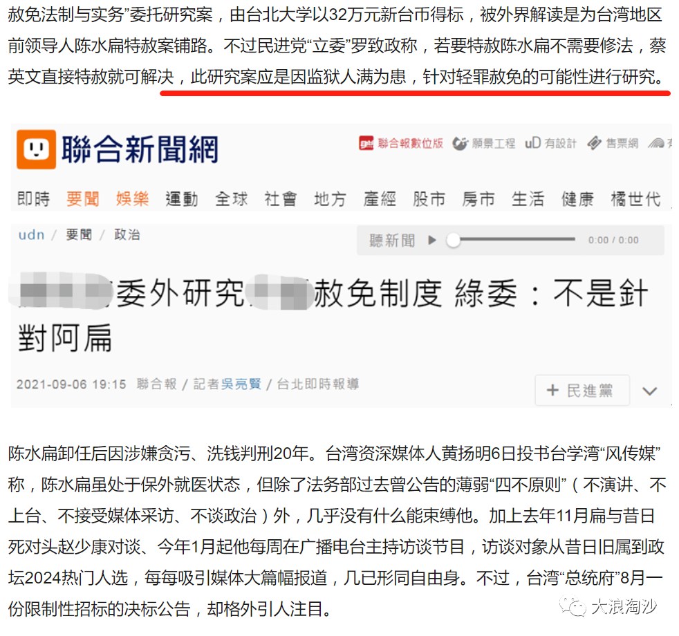 台湾省各方势力既然都没有明确的阻力,那台行政部门就开始犹抱琵琶半遮面地开始研究“特赦问题”了。法务部门还不敢说是要特赦陈水扁,而是说我们来研究一下美国、日本的特赦案例吧!为啥要研究呢?因为台湾监狱人满为患,我们需要特赦释放一批犯人来缓解监狱的压力……