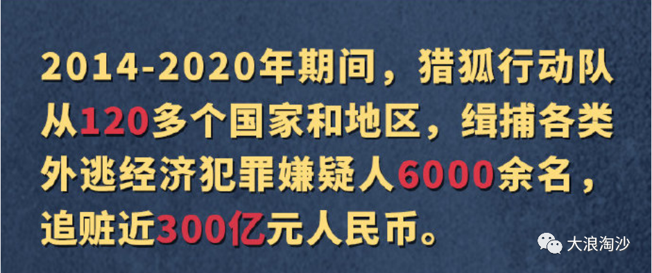 六年以来,猎狐行动硕果累累:缉捕经济犯罪嫌疑人6000余名,追赃300多亿。
