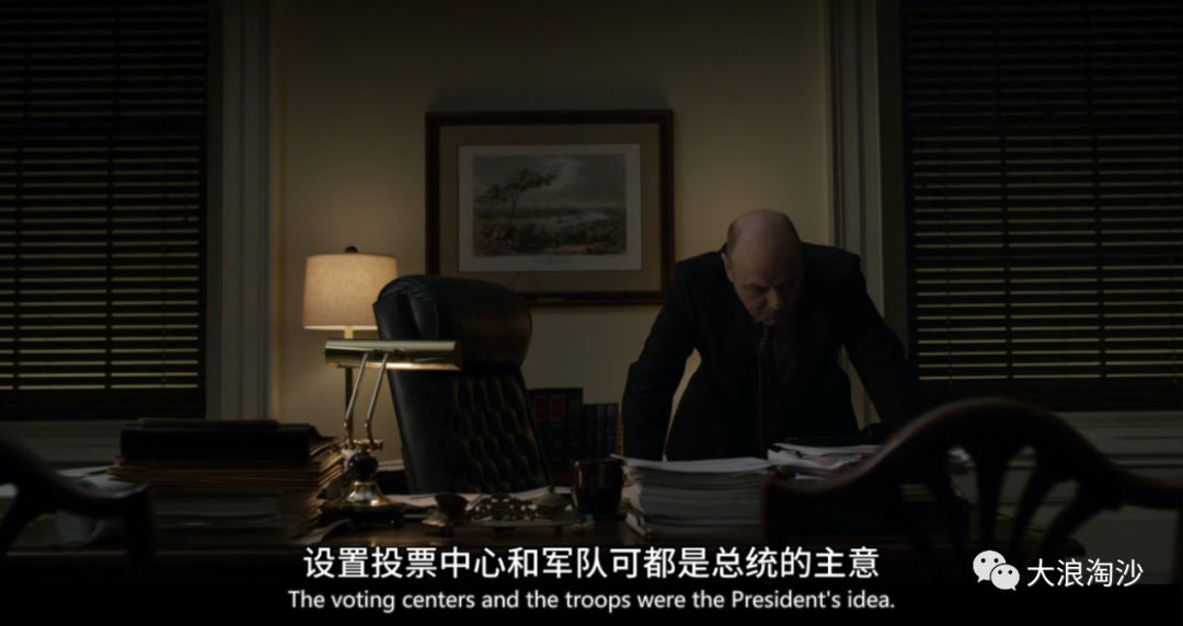 在现在看来,剧中的大选情节实在是太有参考价值了。下木总统是一个不折不扣的流氓,先是通过党鞭的权力挤走了副总统并接任,又操纵曝光总统丑闻令总统辞职,于是他摇身一变成为了总统——一个非民选的总统。任职期间,下木总统丑闻缠身,共和党推出了一位年轻帅气的军人与之竞争,下木败局已定。