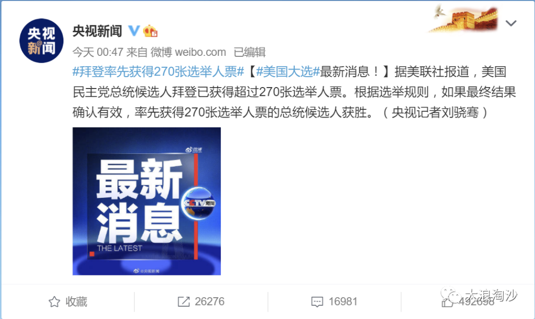 现在来看越来越有往这方面发展的趋势了,为啥最后几个州拖了两三天都迟迟不能出结果,一方面清点邮寄选票需要时间,另一方面谁也不想当那个出头鸟,谁也不想成为让拜登突破270选举人票的那个州。谁是谁倒霉,瞬间就会成为川普支持者们的众矢之的。所以昨晚的消息是美联社披露出来的,直接说了一个总结果,各州谁也不当出头鸟。不过我已经迫不及待了,希望赶紧快进到红脖子民兵组织冲击州政府的剧情。