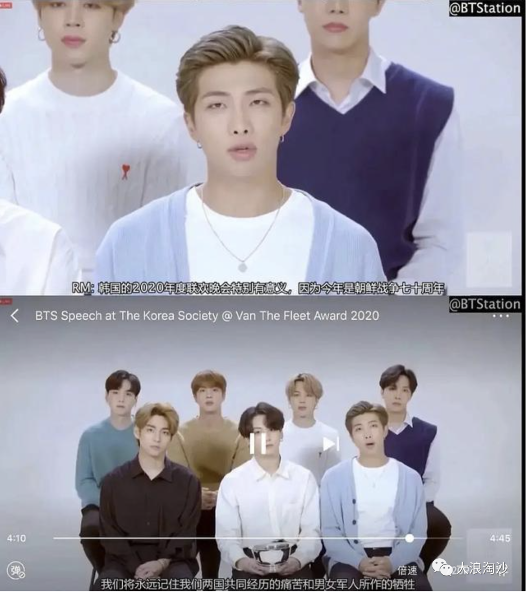先介绍一下事件背景:韩国偶像男团防弹少年团两月前获得美国NGO颁发“范佛里特奖”,一周前曝光的其获奖感言引发争议——防弹少年团队长金南俊最后总结时称:“今年韩国社交协会的晚会意义非凡,因为今年是朝鲜战争爆发70周年。我们会永远铭记两国共同经历的苦难历史,以及无数男女的牺牲。”这一言论因为涉及到我国抗美援朝的历史,引发我国人民的普遍不满。