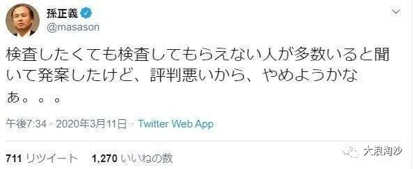日本政府也很离谱,我们看上面这张数据图,各国确诊人数增长趋势基本重合,唯独日本一枝独秀。无他,不检测耳。孙正义因为看病人抱怨不检测的太多,说要捐一百万个试剂盒,结果被日本网民喷死了,说他这是“阴谋”。孙正义就很委屈发了条推特,说“我是因为听说想检测却被拒绝的人很多,于是才有了捐赠检测盒的想法。既然大家都都骂我,那就算了吧”。日本人民真是史诗级韭菜,天皇做梦都能笑醒。