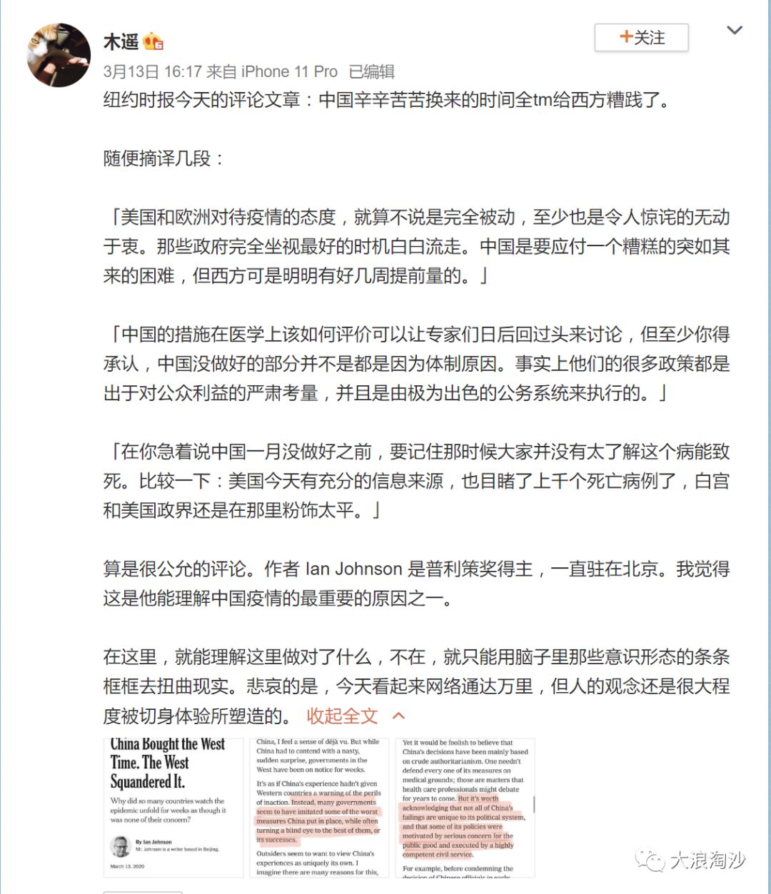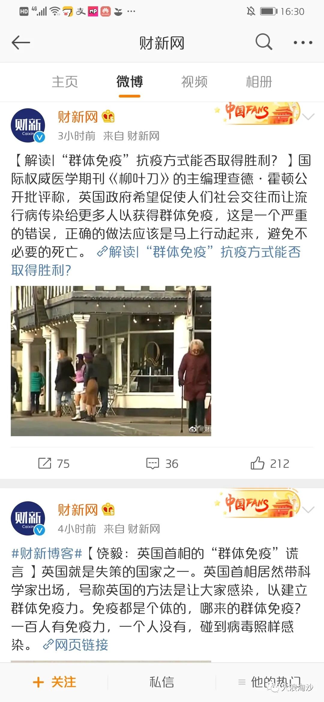 开始跟三联一起洗“群体免疫策略”的财新网一看风头不对,马上见风使舵,连发两条微博撇清关系,实属可乐。