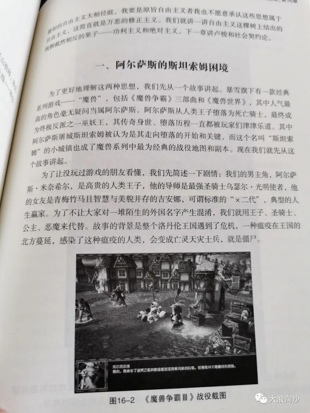 我的《生而贫穷》第十六章的题目是《阿尔萨斯的斯坦索姆困境》,就是以魔兽的经典故事为切入点分析自由主义两大流派——功利主义与道德主义的优点和缺陷。什么是功利主义?人类王子阿尔萨斯来到了一个被瘟疫感染的城市斯坦索姆,感染的市民会变成丧尸转来攻击他的士兵,为了减少可能存在的伤亡,阿尔萨斯决定屠杀所有市民。