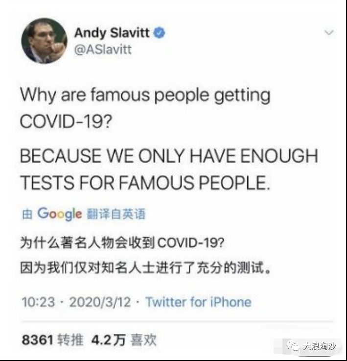 前几天有脑残公知阴阳怪气,说为啥外国那么多政客、官员、商界名人、演员、体育明星被检测出来,我们就没有?这个问题很简单,就是一个幸存者偏差,之前在国外只有非富即贵的人才能进行新冠检测,最近两天才开始逐渐免费检测——但大多数国家的轻症依然不检测,所以西方国家的新冠呈现出一种“富贵病”的表现,穷人得的是“流感”,既不增加确诊人数,死了也不算在新冠里,岂不美哉?