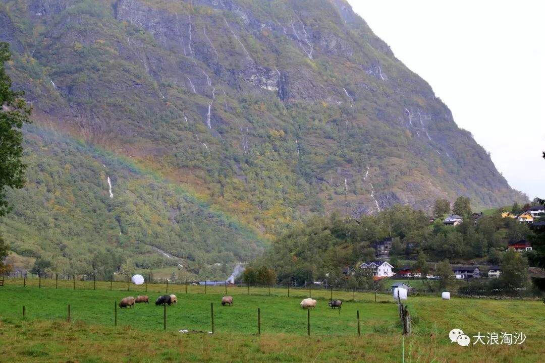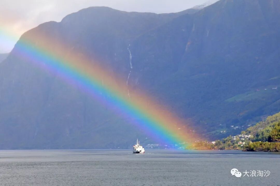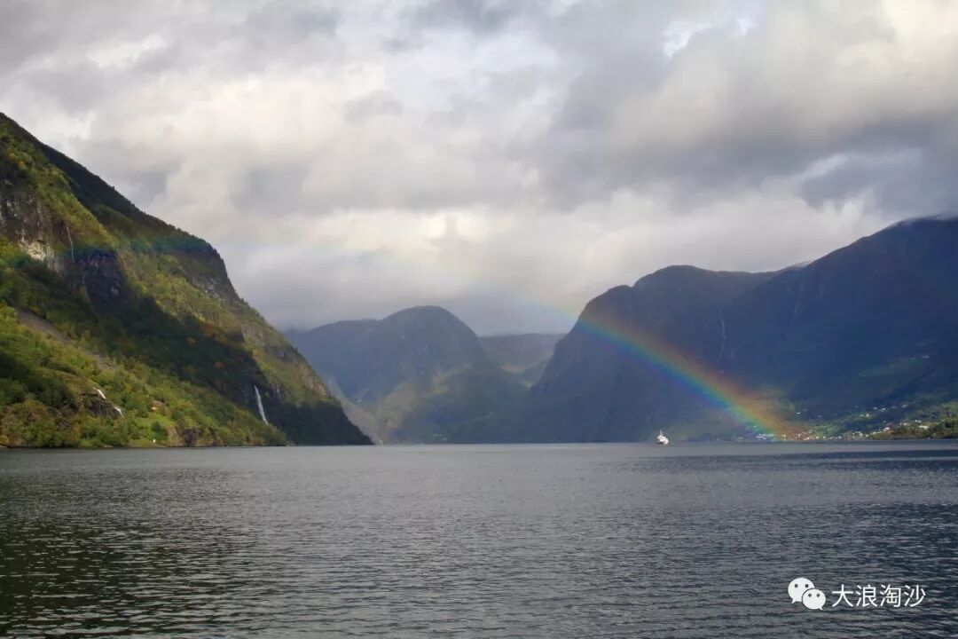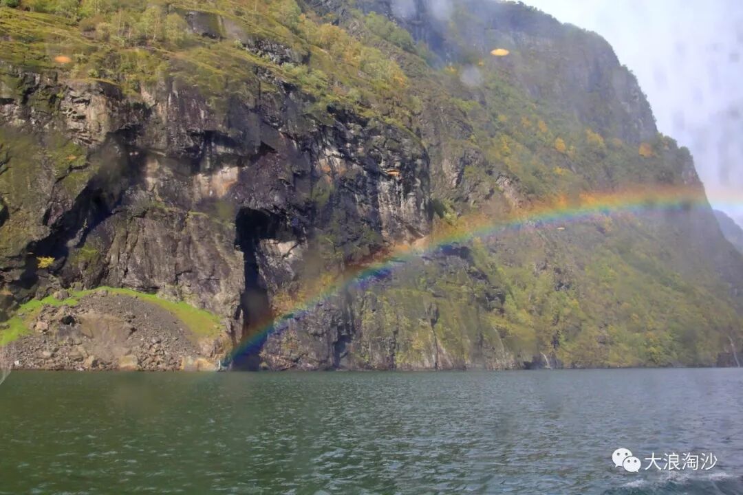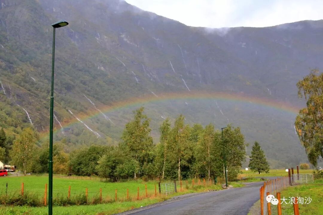 但彼时挪威西部持续阴雨,本来非常可惜,不但爬山难度增加,同时山谷里都是雾气,什么也看不清。但想着反正来都来了,就顶着大雨硬着头皮往山里走。没想到的是,天气忽然晴了半个多小时,就在这半个多小时里,一路上连续遇到了了整整七道彩虹,无敌幸运。赤橙黄绿青蓝紫,谁持彩练当空舞: