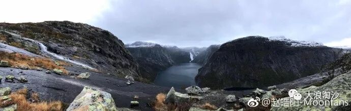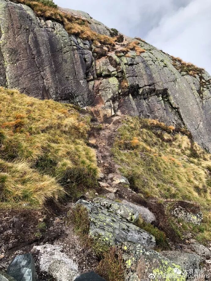 所以非常可惜,我们最后在距离奇迹石八百米的地方掉头了,也算为这趟旅程留个遗憾吧。一路上根本没有机会拿出相机,都是用手机凑合拍的,也就凑合看吧最后我把我的登山杖留在山脚下了,希望能帮到有缘人吧。虽然遗憾不少,但这次在峡湾上遇到了十八级台风,游轮在海上打转;前一天玩皮划艇翻船掉进湖里(北欧九月深秋的湖水喲,没有发烧感冒谢天谢地了);后一天爬山遇到blizzard,也算是兹游奇绝冠平生了。
