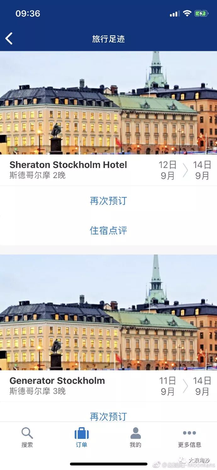 我第一站的目的地是瑞典斯德哥尔摩。好巧不巧,跟那个被扔在坟场的中国游客一家三口订的是同一家酒店:就是这个Generator Stockholm。这家并不是网上所说的四五十块钱一晚的青旅,一个单间也要一千多,我微博上说跟外国人打乒乓球就在这家酒店大堂里。但是环境真的是不好,我住了一晚上就不想住了,转定的喜来登酒店,就是下面这两个重复的订单,宁可两天的房钱白扔了也不住了。我也不是铺张浪费或者啥先见之明,就是感觉出门在外人生地不熟,一定要找最稳妥最保守的方案,穷家富路嘛。曾先生一家三口的遭遇如何评价见仁见智,这个争论起来就没有头了,至少我觉得我放弃这家酒店还是挺明智的。