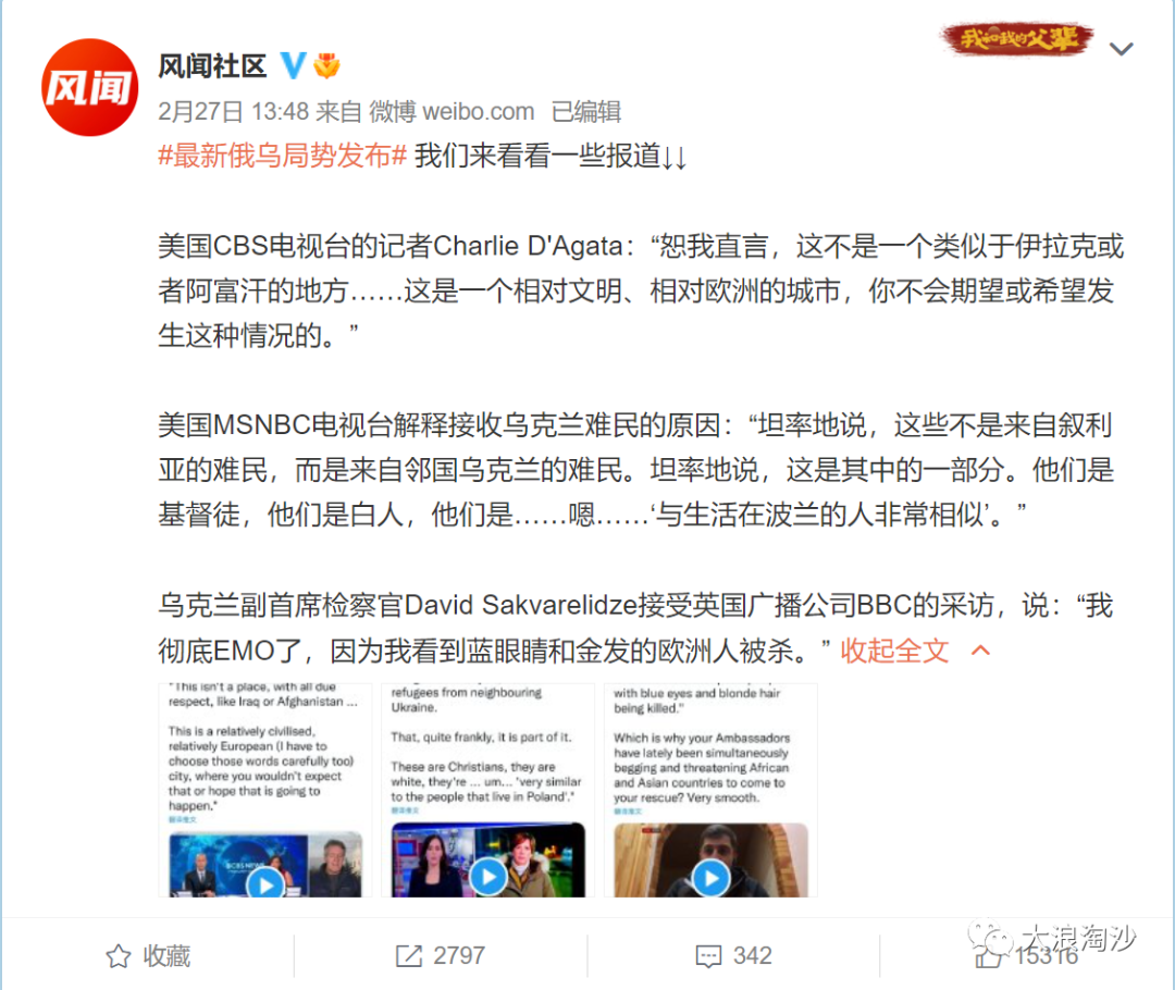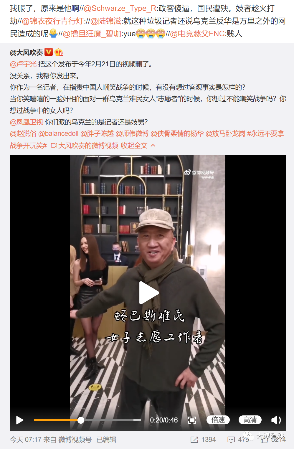 再比如这种记者,嚷嚷什么中国人拿乌克兰女性开玩笑是恶臭,什么现在乌克兰反华情绪都是因为中国网友意淫言论传到了乌克兰。结果被大家发现的,当年东乌局势恶化造就了很多难民,这个记者很猥琐地调侃女性难民“志愿者”,这就是典型的“双标”。