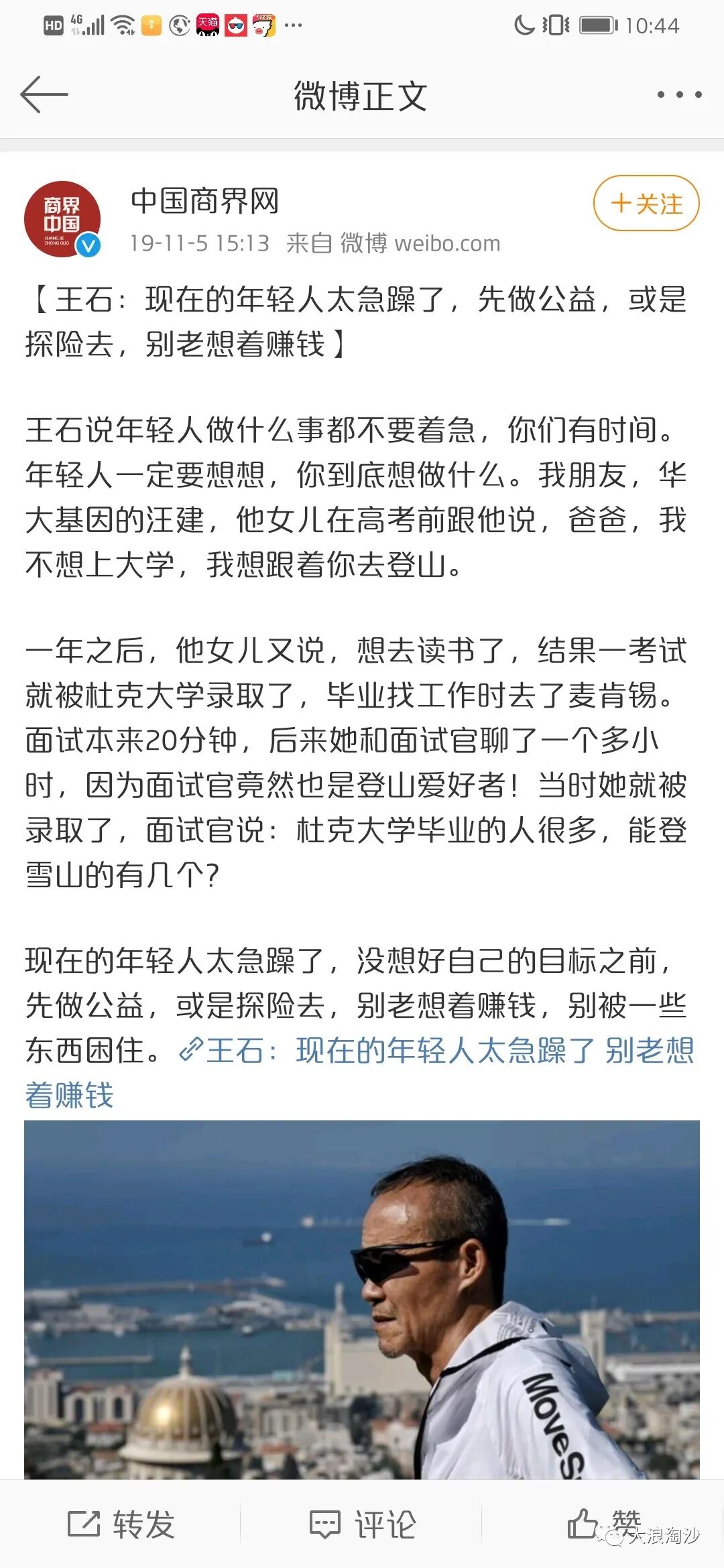 王石这个东西爬一次山就要花三百万,汶川地震的时候表示“万科捐出200万是合适的,不能让捐款成为企业的负担”。