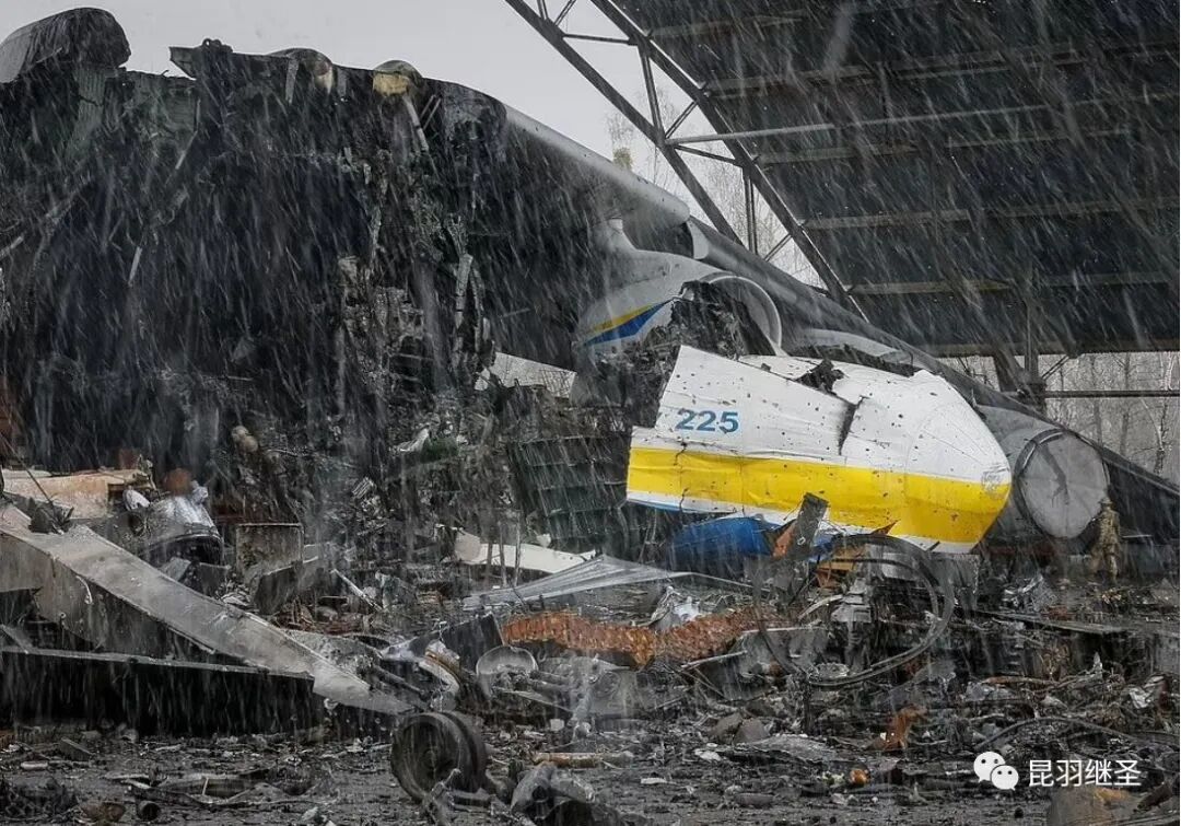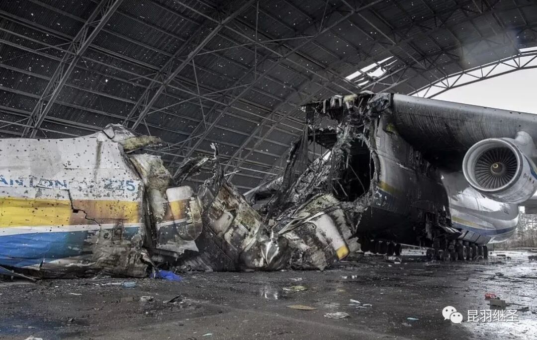 2月27日,乌克兰国防工业公司27日在社交媒体发布消息说,世界上唯一一架安-225运输机在基辅市附近的戈斯托梅利安东诺夫机场遭俄罗斯军队摧毁。破损的停机棚下,安-225巨大的机身早已断为两截,大火炙烤过的高分子材料犹如瀑布一样从顶部倒垂下来,猛一看像个水帘洞,机身上布满了弹孔,可谓满目疮痍,庞大而残破的身躯令人不胜唏嘘。