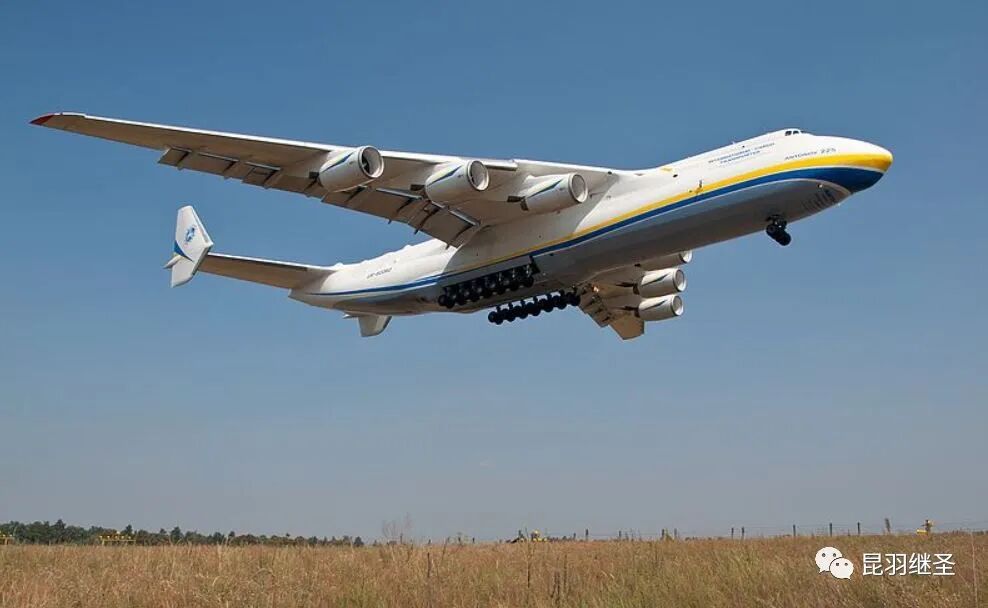 安-225长84米,翼展88.4米,空机重量就有285吨,高18.1米,由6台发动机提供动力,最大起飞重量为 640吨,最大载重量250吨。AN-225的货舱是“掀罩式”机首,并把驾驶舱设在主甲板上方的二楼处,在货舱内还装设了起重机,当初设计是用来运载火箭部件的,因此货舱非常平整,整个货舱全长43.51米,最大宽度6.68米,货舱底板宽度6.40米,最大高度4.39米,这个尺寸全球首屈一指。