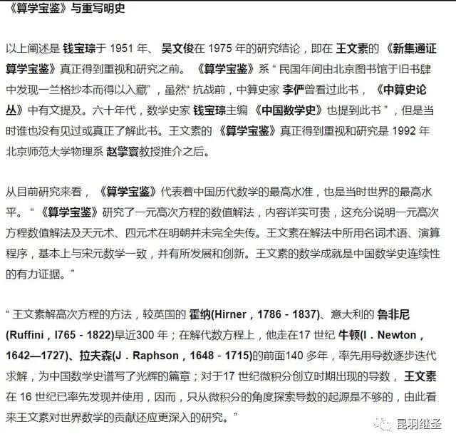 这不是我说的,这是国际数学史(看清楚,数学后面有个历史的史字,不是最高数学奖,否则有人会跑来劈头盖脸质疑,中国人不骗中国人,数学最高奖不是菲尔兹奖吗)最高奖获得者之一、新加坡国立大学蓝丽容教授专门研究这一问题并且在出版的专著《雪泥鸿爪溯数源》一书中亮明的观点。