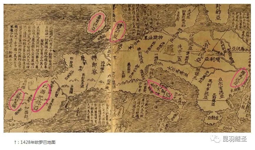 1428年的《坤舆万国全图》上可是有详细标注的欧罗巴和中东信息哟。
