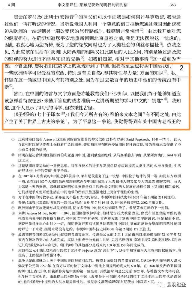 不仅如此,中国的各种知识点燃了欧洲的科技之火(信中多次提及中国文化一直存续,所以中国知识很宝贵,天文历法、冶金工艺、畜牧业农业、中医中药等一切知识),还努力把中国语言移植过去,他在信中透露,世界语言的真实起源可能只有一种。