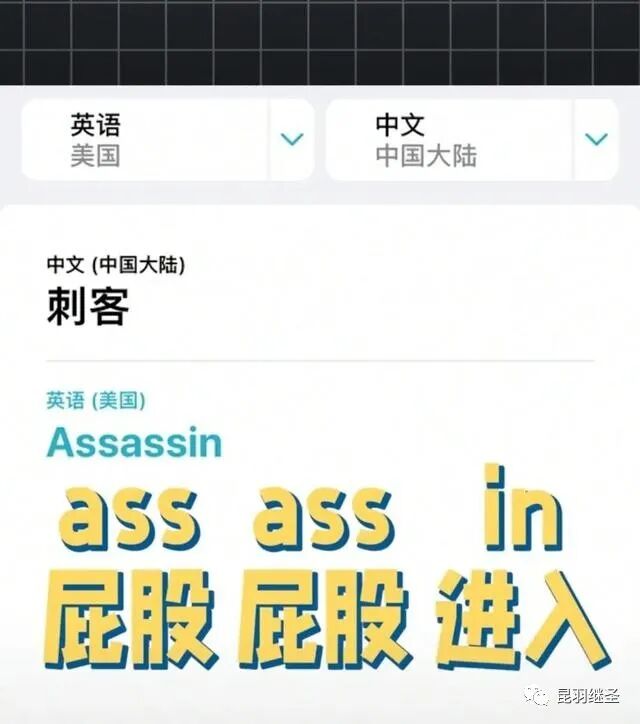 难怪的英文刺客的单词是“Assassin”,拆开来就是ass-ass-in,屁股-屁股-进入