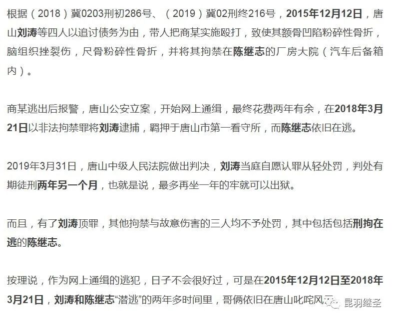 从判决书还可以看出,另外一个犯罪嫌疑人陈继志一直出于“刑拘在逃”的状态。