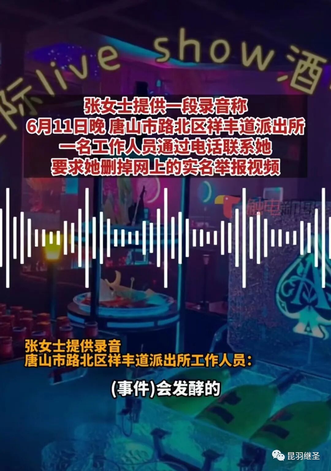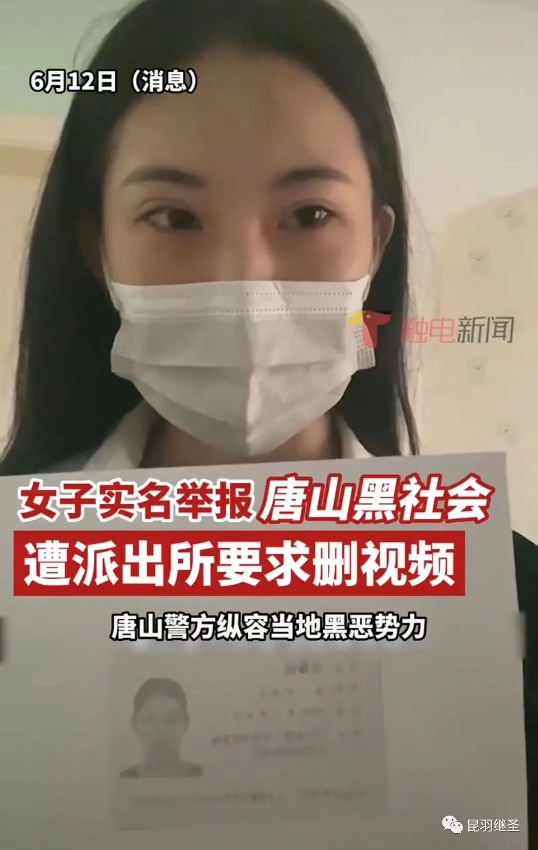 与此同时,又有一名女子实名举报唐山警方纵容当地黑恶势力,被派出所要求删除视频。