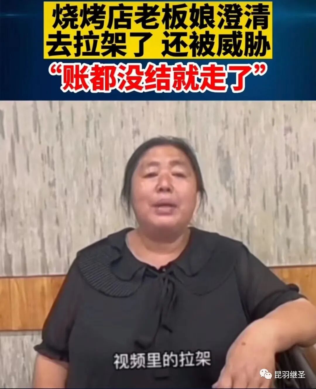 事后,老板娘出来澄清,自己就是视频中那个穿黑衣服的女人,是上前拉过架的,后来还被人抓住手腕。