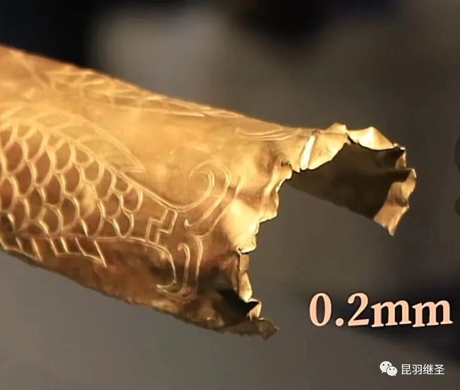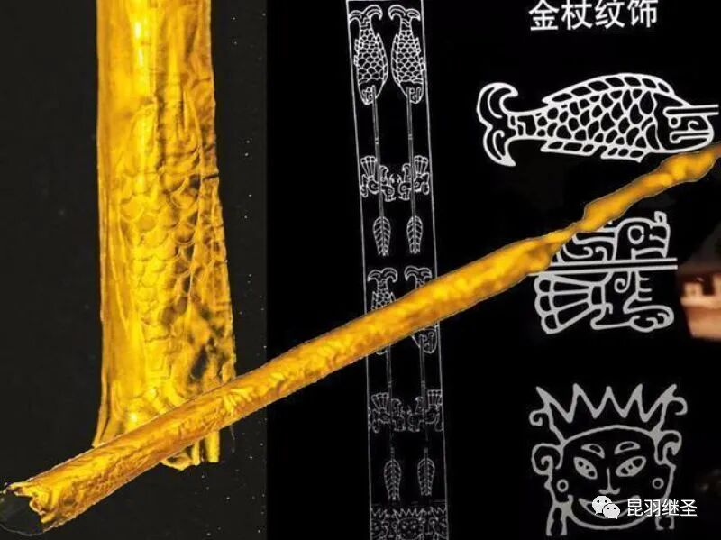 瞧瞧这鱼,厚度仅有0.2毫米的金箔片,包在木杖上,成为一根黄金权杖