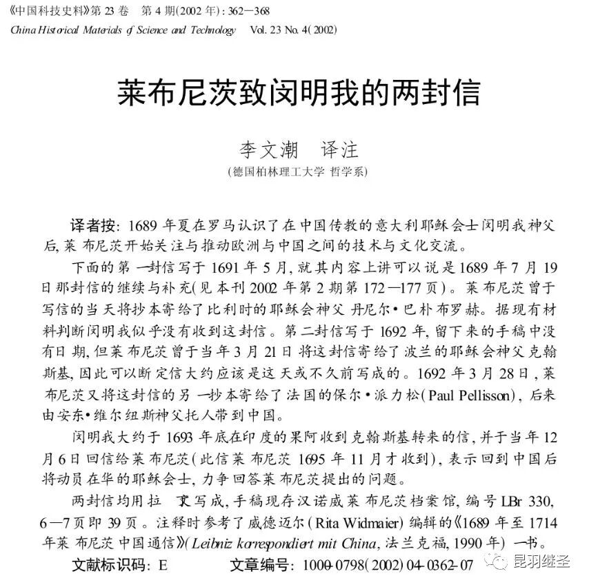 莱布尼茨与在华传教士如闵明我等的通信中曾多次提及约翰·韦伯认为汉语就是原始语言的观点,后来还在自己的语言学论文中称:
