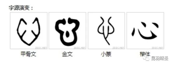 从文字造字形态上,大体可以看出解剖学的萌芽,这个心字的甲骨文是具有心脏的形状和心腔结构的。