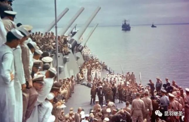 1945年9月2日,重光葵穿着西装拄着拐杖,登上美军战列舰密苏里号,签署了日本投降书。