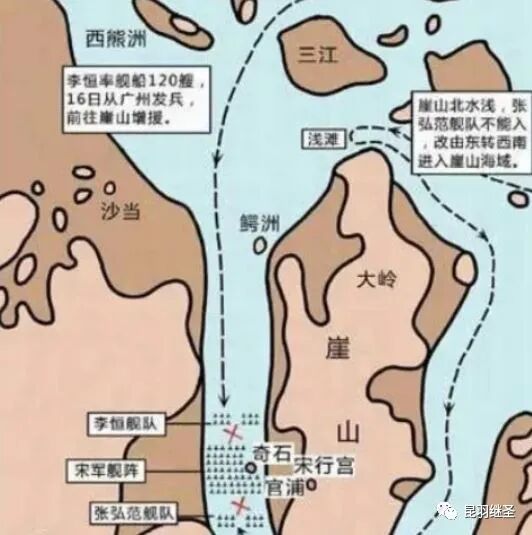 祥兴二年(1279年)正月,张弘范率元军攻至崖门,元军浩浩荡荡陆续抵达崖山,对南宋形成三面包围之势。