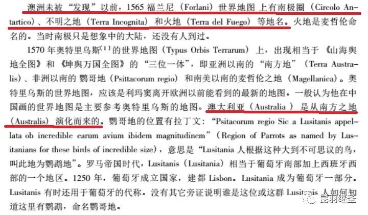 李兆良教授经过研究认为,西方地图中拉丁文“Australis”一词,原意是译自中国命名的“南方之地” 。