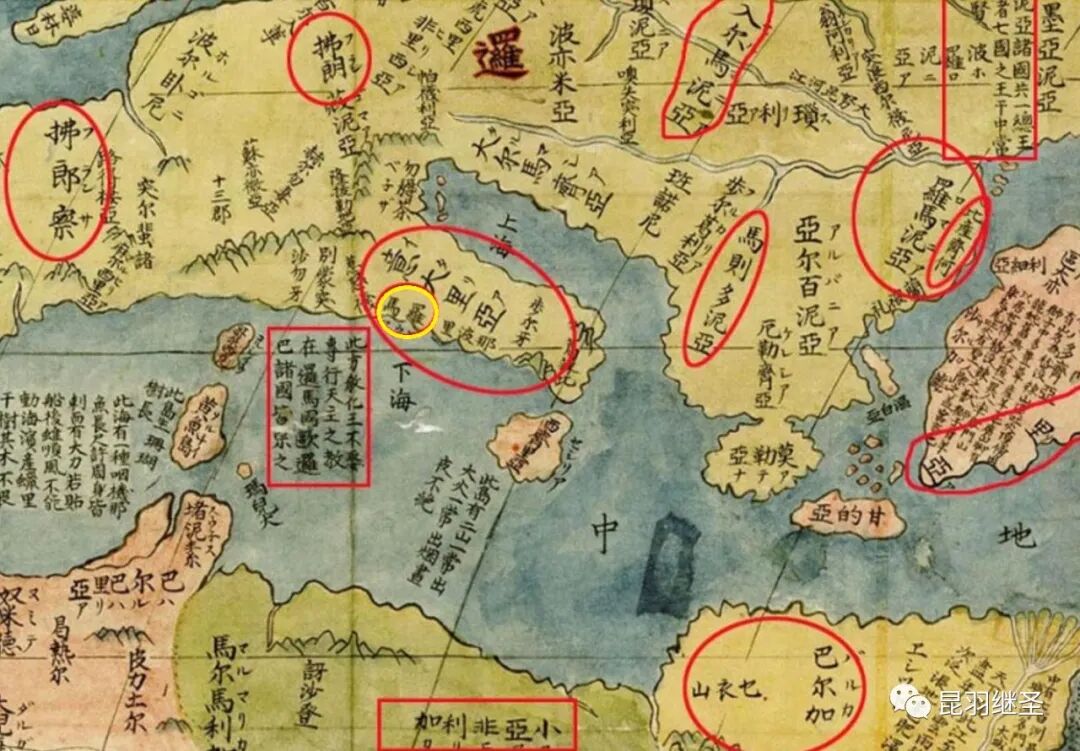 好了,介绍完这幅地图的背景,我们来看看此图上对中国的标注。