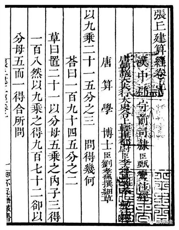 《张丘建算经》流传后世的传本有92问,比较突出的成就有最大公约数与最小公倍数的计算,各种等差数列问题的解决、某些不定方程问题求解等。
