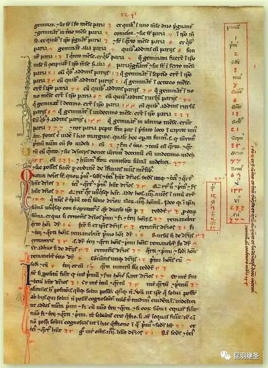 这就是《计算之书》页面边沿的斐波那契数列(阿拉伯数字),拉丁文版的(唯一的版本)。