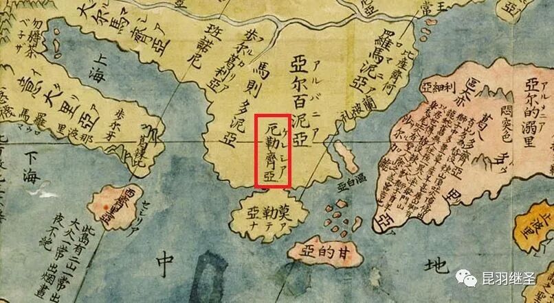 6、Libya:今发音[libiya],但明末传教士发音为[lihiya],《坤舆万国全图》中的汉语音正是“利未亚”。