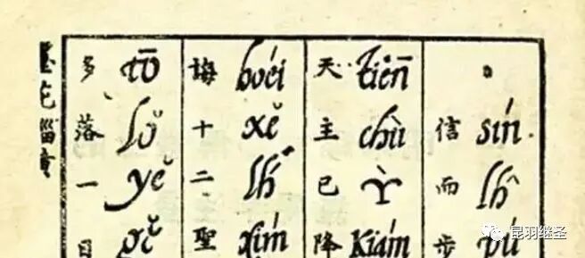 1605年,利玛窦在北京出版了《西字奇迹》,用的就是这套方案。其中有4篇汉字文章,全部加注了所谓拉丁字母的注音。