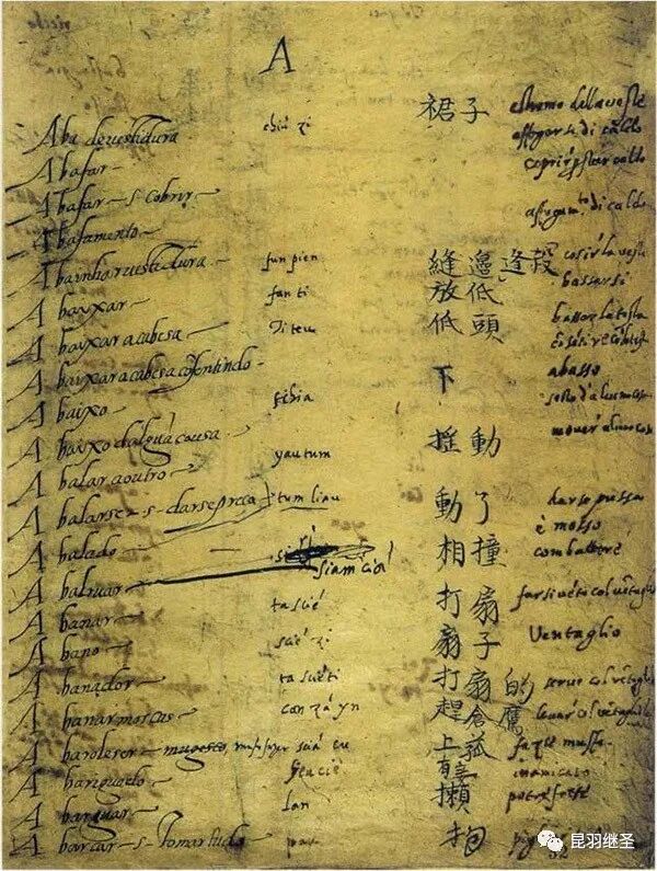 一口广东话的两个意大利人利玛窦和罗明坚先是参照汉语对译的方式,编撰了这本《葡汉辞典》,有了这本词典,才标志着葡萄牙语从低劣的口语走向了书面语言。