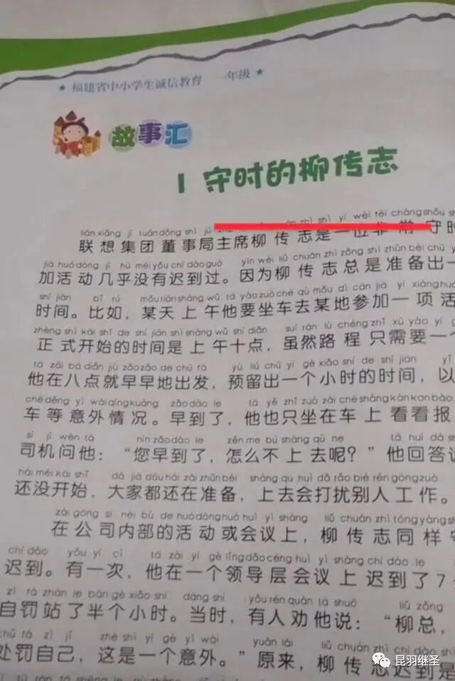 开学第一天,《守时的柳传志》就在小学一年级的诚信课本上出现,来教育大家的小孩如何守时了。