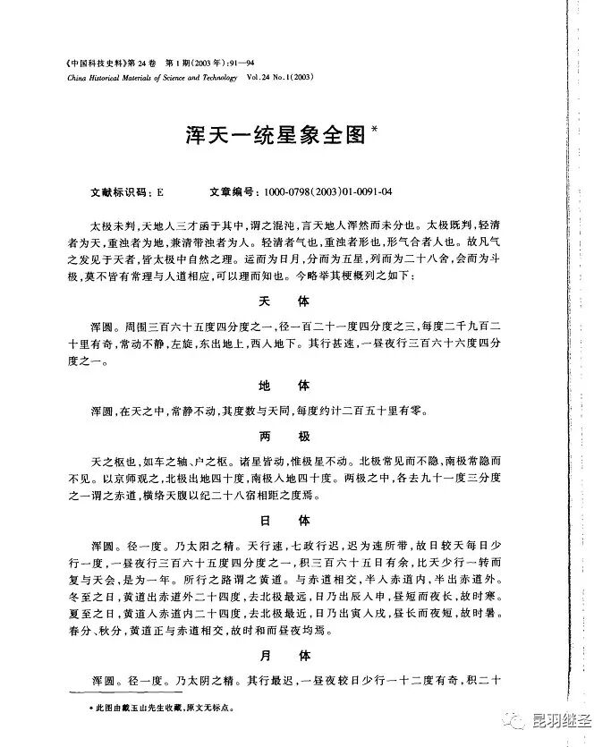 日本大阪市立科学馆藏品,该馆还曾发表过《浑天一统星象全图》的论文