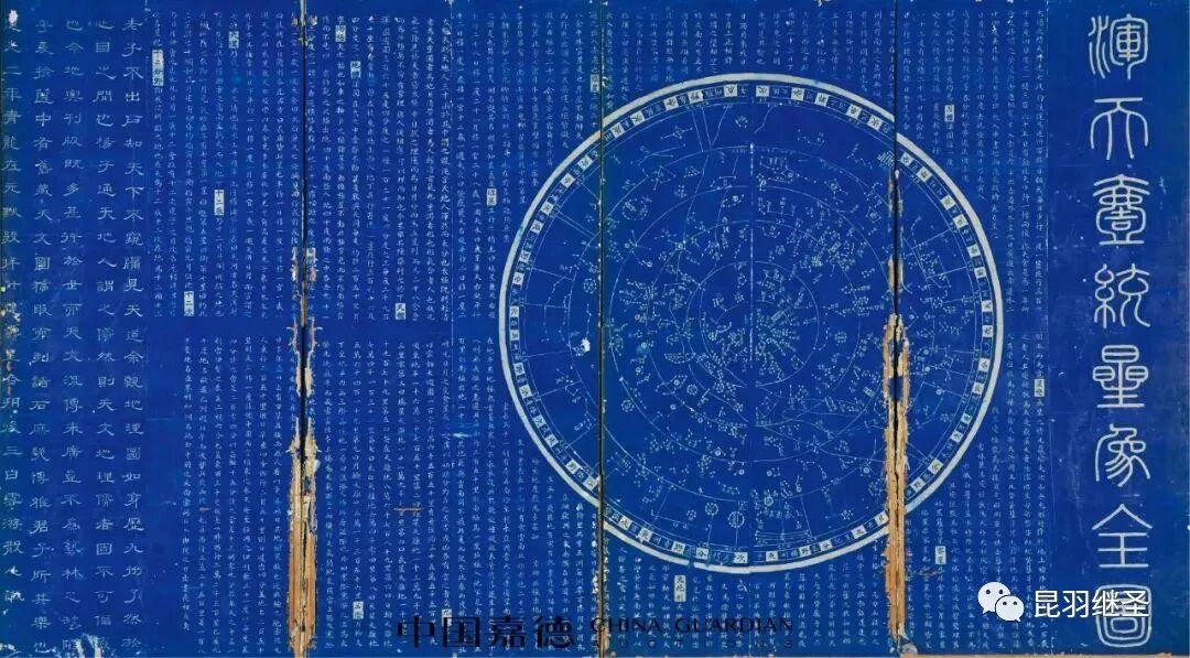 后来,经过国内专家的考证,终于确认《浑天一统星象全图》为“苏州道光木刻天文图”,即苏州南宋淳裙石刻天文图的木刻重刊改制版本,全图由八个条幅组成,高1.25米,长2.195米。
