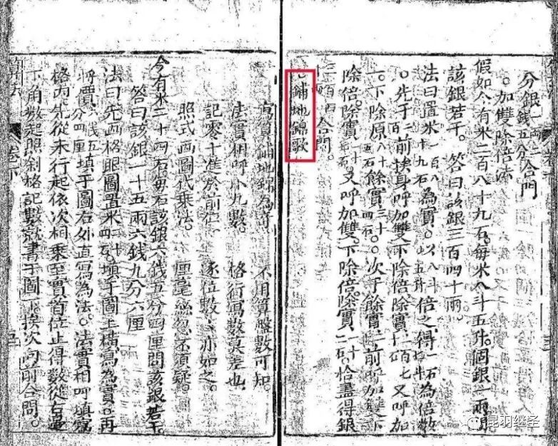 书中记载了“铺地锦”的算法歌诀、例题、解答以及算法详细,具有典型的中国古代算书特征。