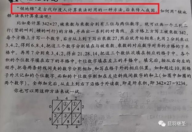 有人说,这是印度乘法,是来自印度,书上就是这么说的。