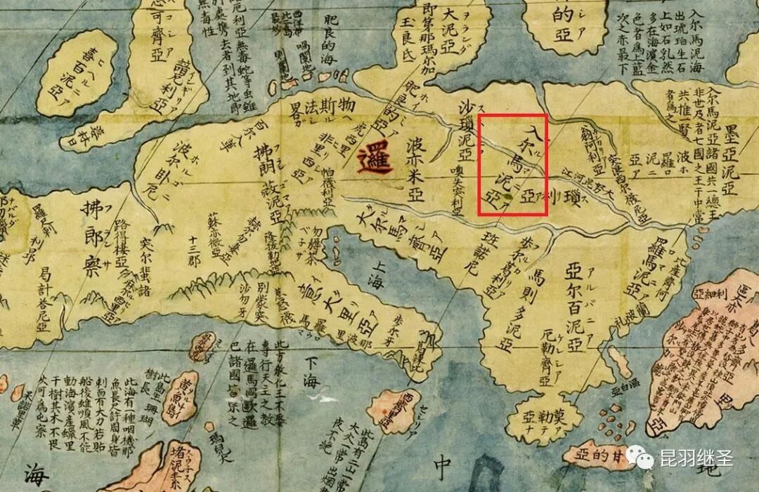之所以坤图上是如此命名,是因为“入尔玛尼亚”(日耳曼尼亚)在当时的欧洲是一片蛮荒,是野蛮之地。