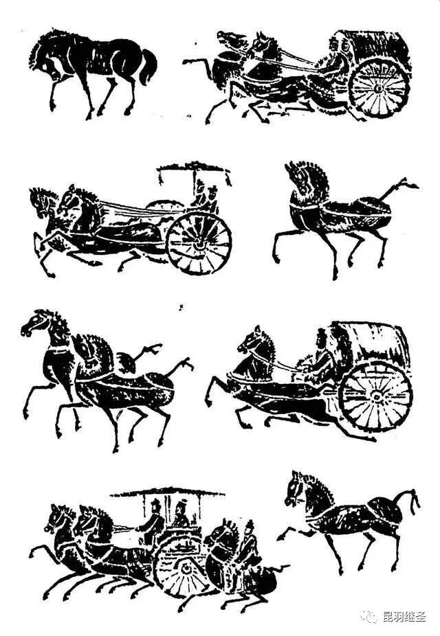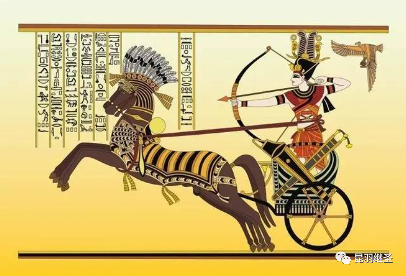 古埃及著名壁画,两匹马拉动的马车