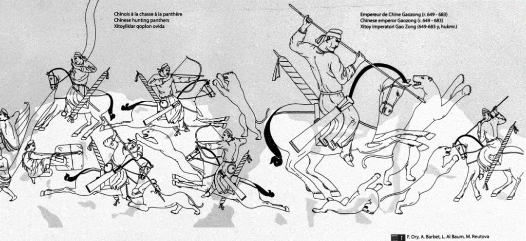 大使厅壁画中的唐人猎豹图:右边这位最高大者便是唐高宗李治