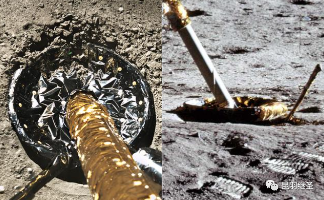 嫦娥五号着上组合体着陆足垫深陷月面的凹坑,阿波罗着陆月面后基本没有凹坑,对比如下: