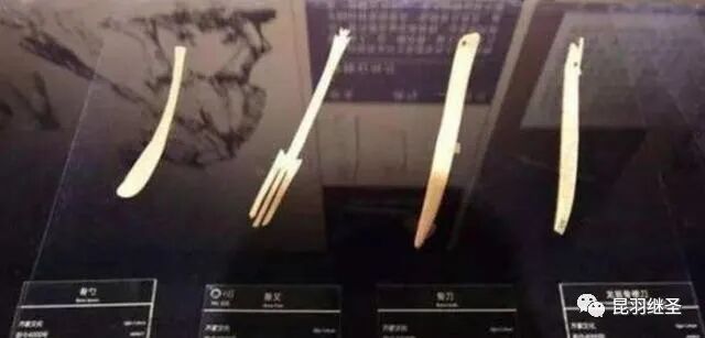 随后,又在甘肃武威距今约4000年前的一处齐家文化遗址中,发现了一套骨制餐叉,这个骨叉的型制为三齿状,与现代餐叉非常接近。骨叉、餐刀、勺子出土的时候是在一起的,说明当时是成套使用的。